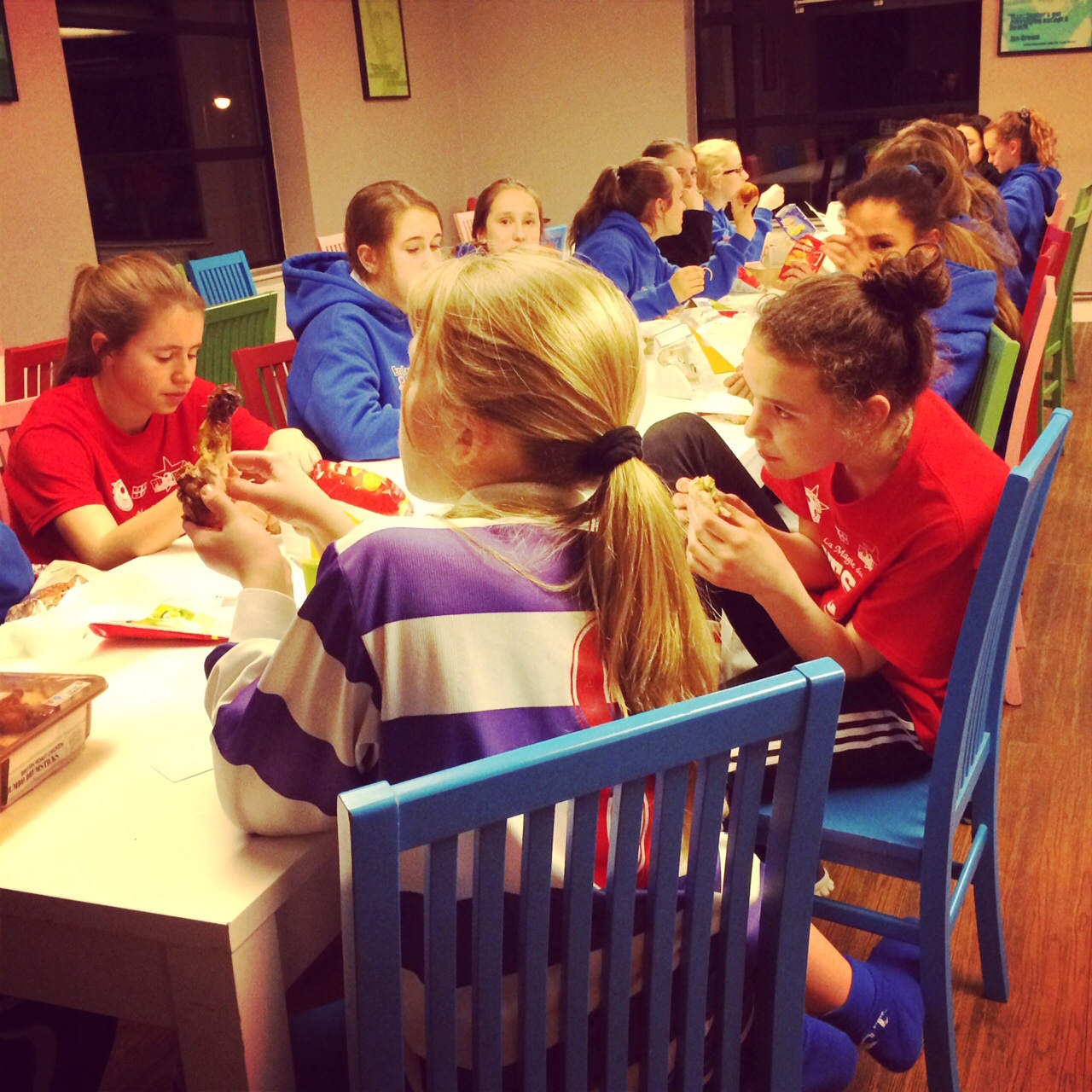 Départ pour Manchester (2h de route) suite au match puis arrivé à l'auberge de jeunesse YHA ou les filles se douchent et se couchent en arrivant !!